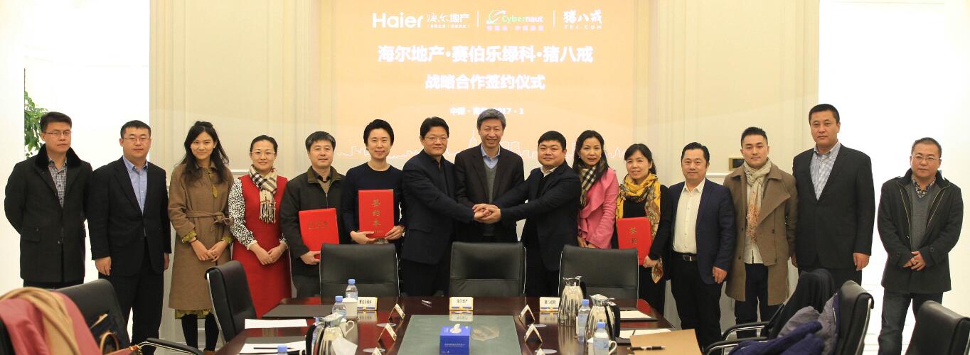 2017年1月21日,海爾地產(chǎn)集團(tuán)與賽伯樂綠科投資管理有限公司、重慶豬八戒網(wǎng)絡(luò)有限公司在海爾全球創(chuàng)新模式研究中心簽署戰(zhàn)略合作協(xié)議,正式建立全面戰(zhàn)略合作伙伴關(guān)系。海爾集團(tuán)高級(jí)副總裁、海爾地產(chǎn)集團(tuán)董事長(zhǎng)盛中華、賽伯樂綠科董事長(zhǎng)李冬、豬八戒網(wǎng)董事長(zhǎng)朱明躍等三方主要領(lǐng)導(dǎo)出席了簽約儀式并致辭。