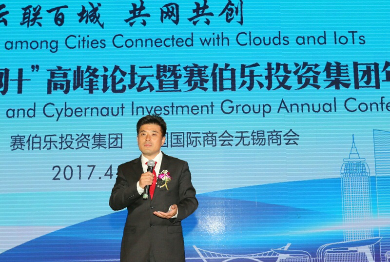 2017年4月14日,由賽伯樂(lè)投資集團(tuán),中國(guó)國(guó)際商會(huì)無(wú)錫商會(huì)聯(lián)合主辦的以“云聯(lián)百城 共網(wǎng)共創(chuàng)”為主題的2017中國(guó)“物聯(lián)網(wǎng)+”高峰論壇暨賽伯樂(lè)投資集團(tuán)年會(huì)在無(wú)錫市靈山啟幕。