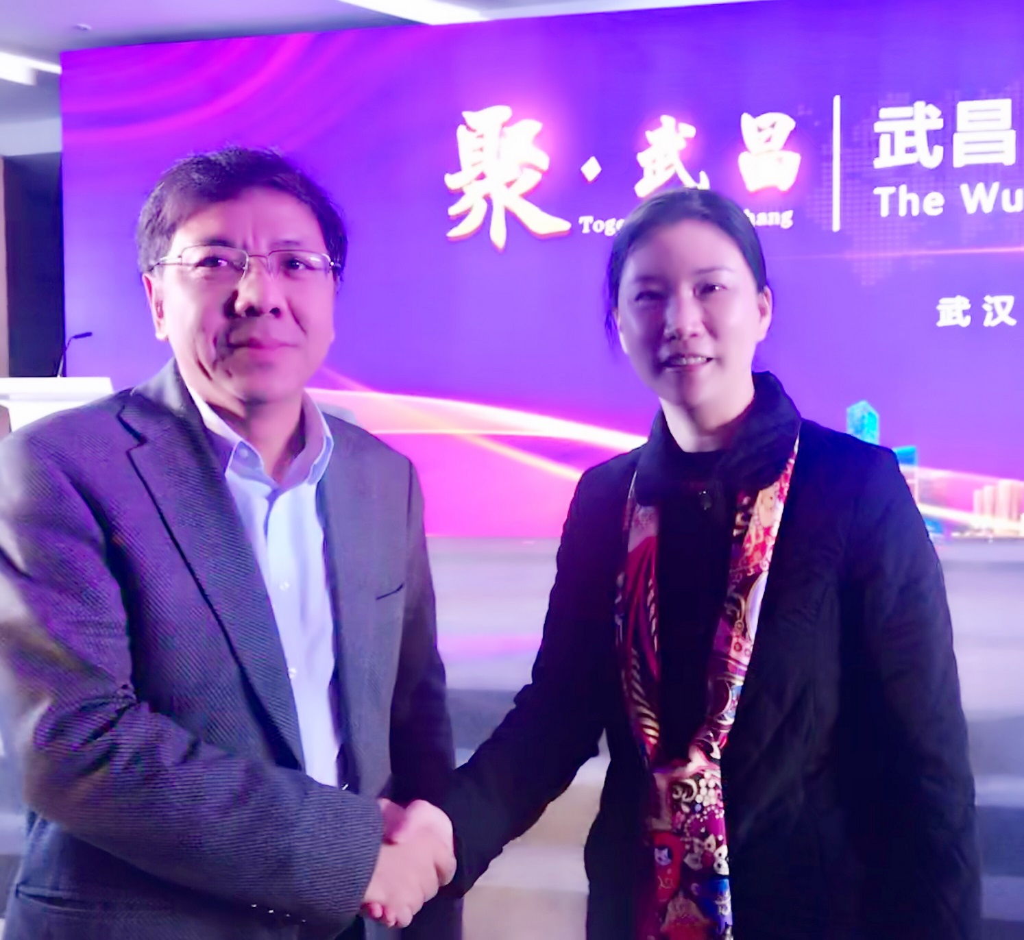 武昌區(qū)區(qū)委書記劉潔(右)與賽伯樂合伙人、國科大雙創(chuàng)學(xué)院副院長陳佳(左)
