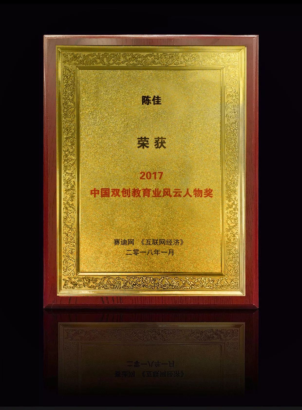 2018年1月23日,由賽迪網(wǎng)主辦的2017創(chuàng)新影響力年會暨賽迪網(wǎng)2017年編輯選擇評選活動在北京順利召開。在經(jīng)歷了嚴苛的候選人篩選、多方實地調查、以及權威的專家組評審等重重考核環(huán)節(jié),陳佳最終從眾多的候選人中脫穎而出、成功摘獲“2017中國雙創(chuàng)教育業(yè)風云人物獎”。