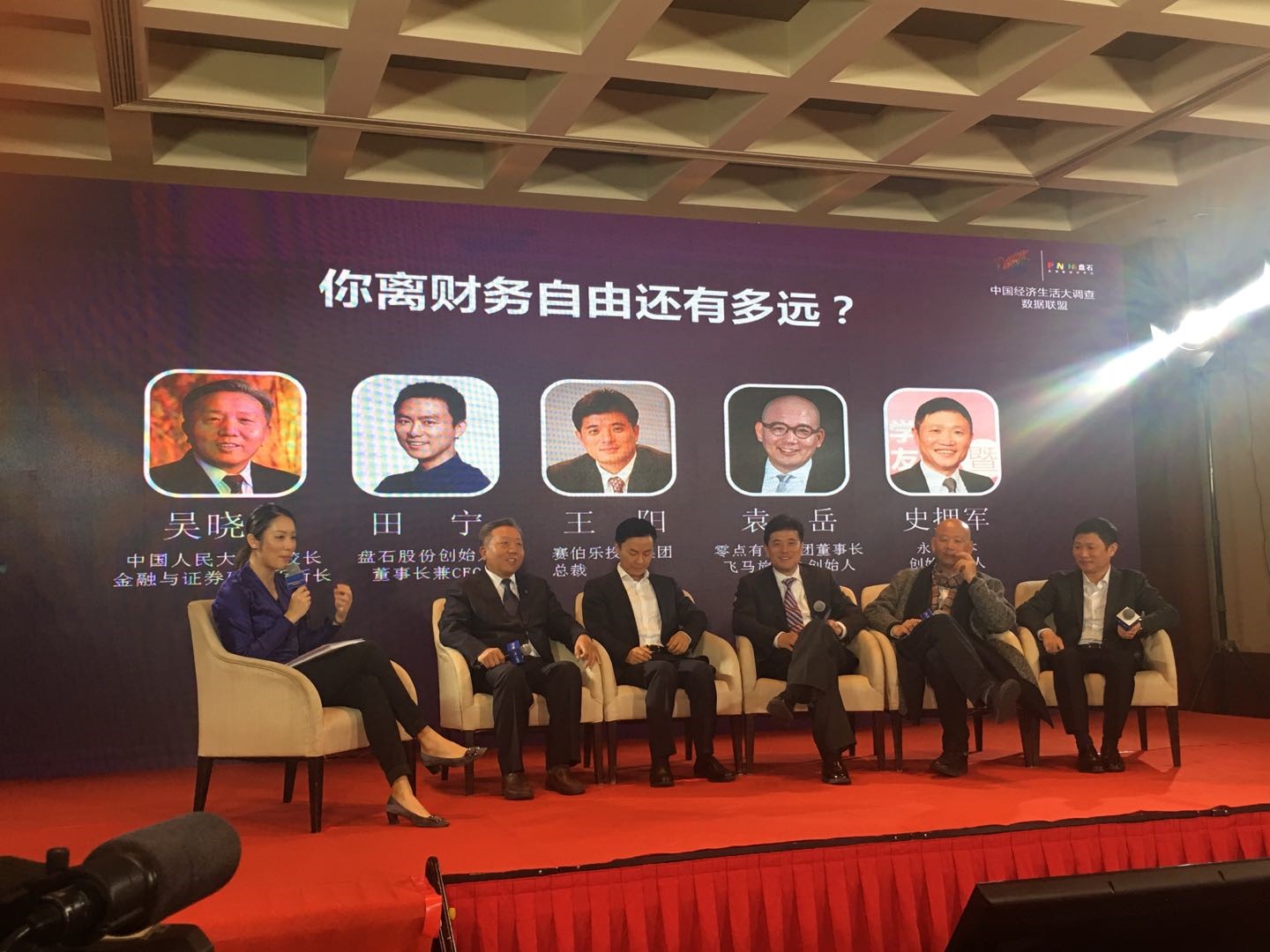 在各位嘉賓演講之后,王陽博士與盤石股份董事長田寧,著名經(jīng)濟(jì)學(xué)家吳曉求、零點(diǎn)有數(shù)集團(tuán)董事長袁岳以及永君資本創(chuàng)始合伙人史擁軍進(jìn)行圓桌論壇,發(fā)表了各自對財(cái)務(wù)自由的觀點(diǎn)。王陽博士提到不同人對于財(cái)富自由的標(biāo)準(zhǔn)不同,要實(shí)現(xiàn)獲得感、幸福感、安全感,除了社會(huì)的保障,如教育、保險(xiǎn)、健康等,心靈的自由最重要。要想達(dá)到財(cái)富自由,投資是最有效的途徑。王陽博士指出投資應(yīng)該交給專業(yè)的團(tuán)隊(duì),專業(yè)的投資團(tuán)隊(duì)在熱門投資方向上超前的布局,以及資金管理上有豐富的經(jīng)驗(yàn)。