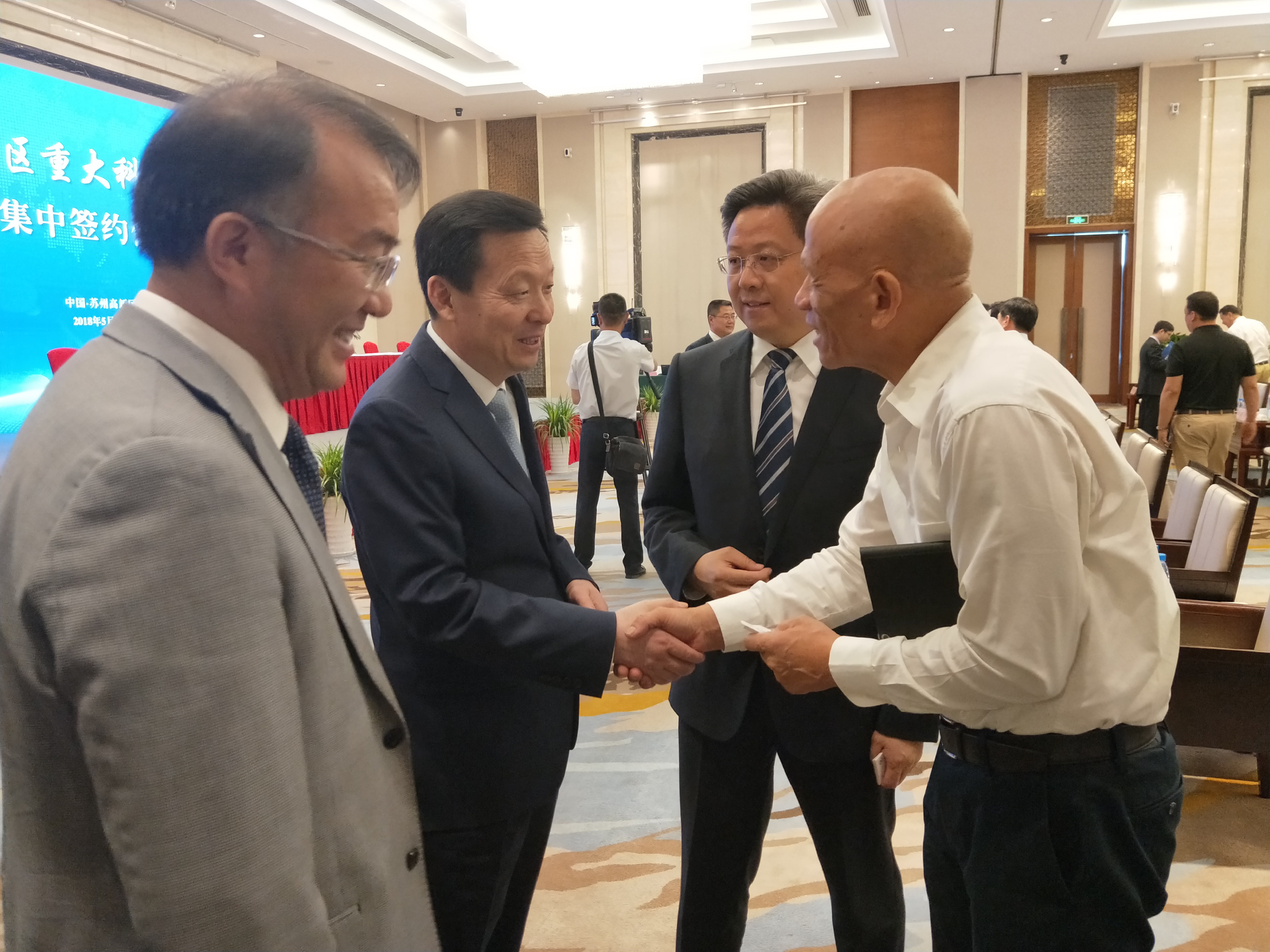 簽約儀式前,江蘇省委常委、蘇州市委書記周乃翔集中會見了包括董事長朱敏在內(nèi)的合作項目代表,代表市委、市政府對朱敏的到來表示熱烈歡迎和衷心感謝。
