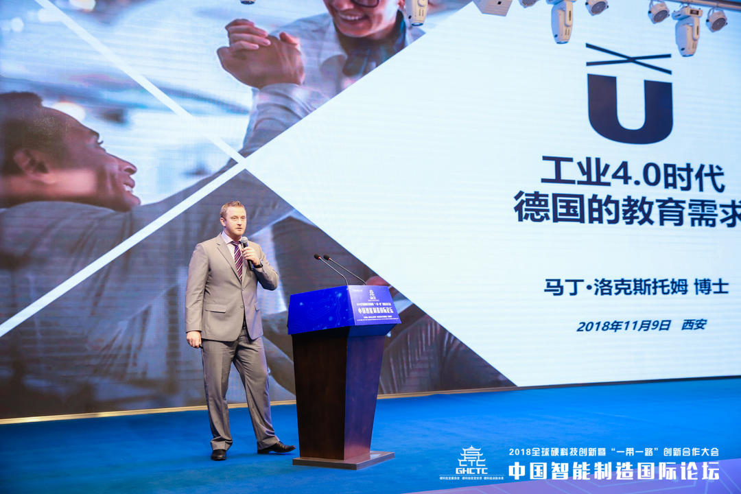 德國(guó)XU數(shù)字企業(yè)大學(xué)首席執(zhí)行官M(fèi)artin Lockstrom發(fā)表主題演講《智能制造領(lǐng)域人才的培養(yǎng)》。