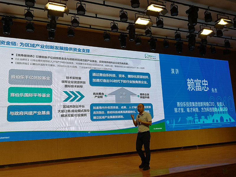 賴富忠先生作為國內(nèi)知名創(chuàng)新企業(yè)嘉賓代表之一,在會上發(fā)表了《5G時代下,賽伯樂產(chǎn)業(yè)發(fā)展中心如何為區(qū)域賦能》的主題演講。他表示賽伯樂是一家非常具有科技基因的投資公司,投資方向以科技和互聯(lián)網(wǎng)領(lǐng)域為主, 賽伯樂投資與其他純財務(wù)投資不同,賽伯樂主要是做產(chǎn)業(yè)投資,以區(qū)域產(chǎn)業(yè)基金來投資孵化和助力當?shù)禺a(chǎn)業(yè)發(fā)展,從而培育出行業(yè)獨角獸。
