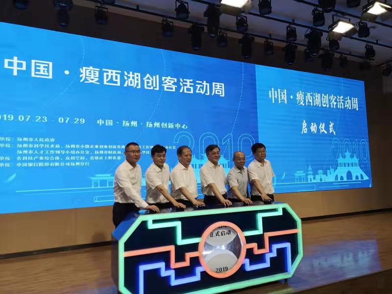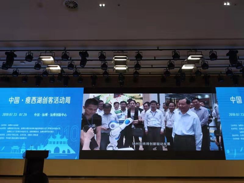 2019年7月23日,2019中國·瘦西湖創(chuàng)客周活動正式于揚州創(chuàng)新中心隆重開幕,省科技廳副廳長蔣洪先生、揚州市人民政府副市長方桂林先生、江蘇省高新技術(shù)創(chuàng)業(yè)服務(wù)中心黨委書記李太生先生、揚州市科技技術(shù)局局長陳星先生、揚州市人民政府副秘書長張小輝先生等重要領(lǐng)導(dǎo)出席活動。上海賽伯樂投資有限公司創(chuàng)新網(wǎng)絡(luò)總經(jīng)理賴富忠先生、業(yè)務(wù)拓展總監(jiān)劉星女士代表賽伯樂應(yīng)邀出席。
