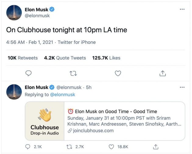 ?? 特斯拉CEO埃隆·馬斯克于北京時間2月1日下午14:00在Clubhouse創(chuàng)建聊天室,房間的嘉賓還包括知名風投公司A16Z的聯(lián)合創(chuàng)始人Marc Andreessen、知名天使投資人Sriram Krishnan等多位知名人士。